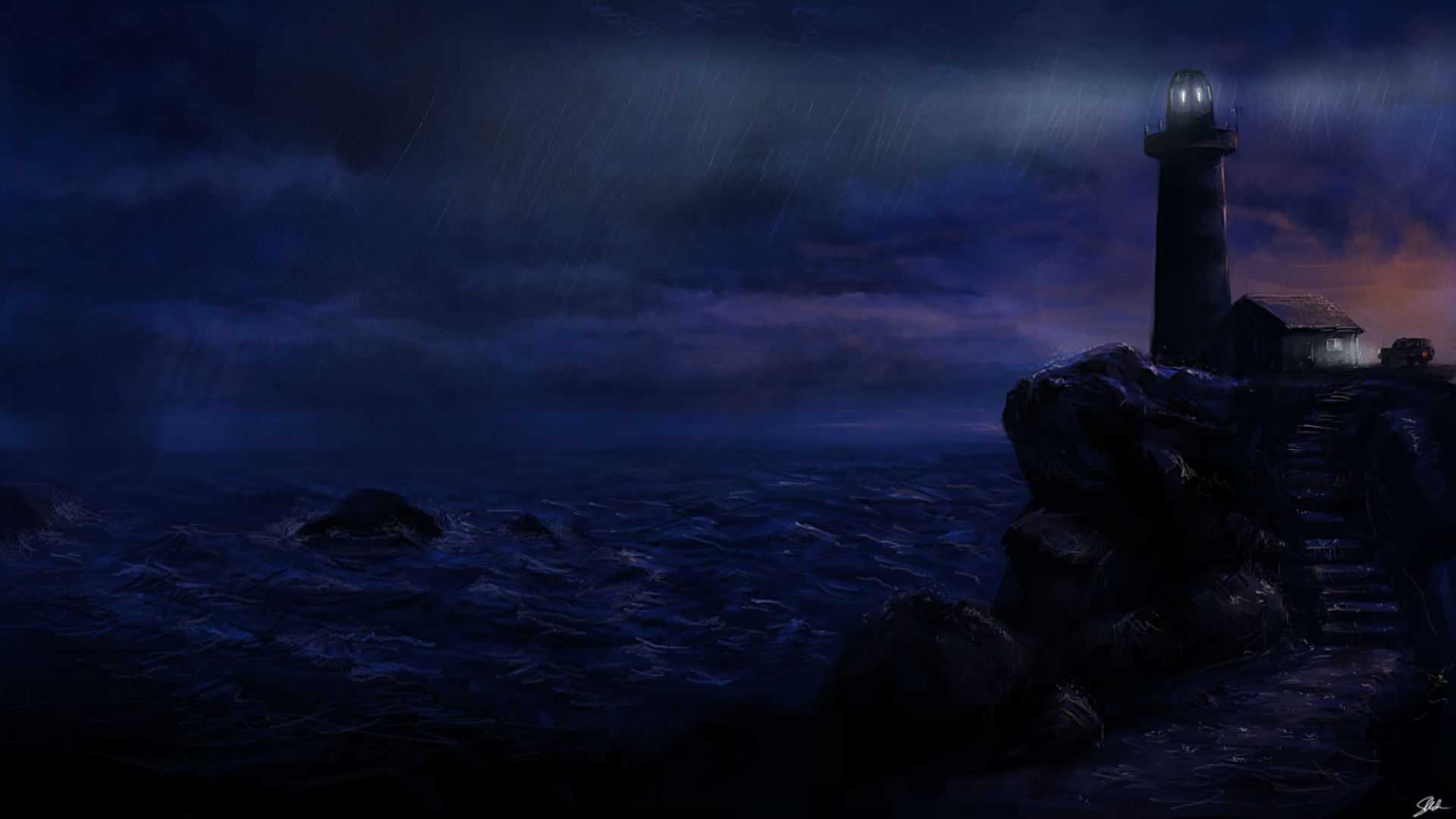 Стоял высокий старенький маяк.