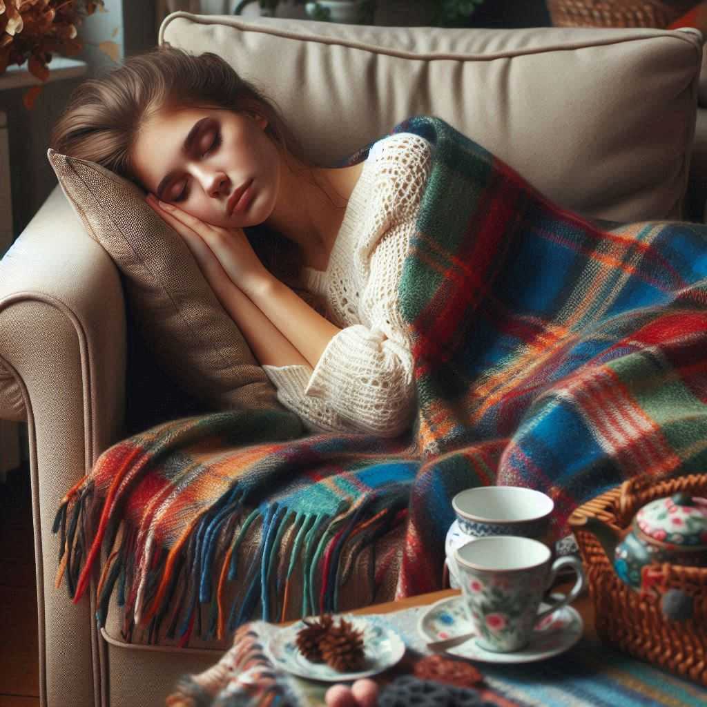 Засыпая под клетчатым пледом.