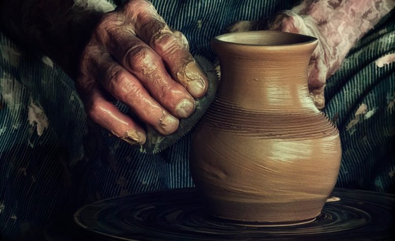 Посуду леплю из глины сырой,
