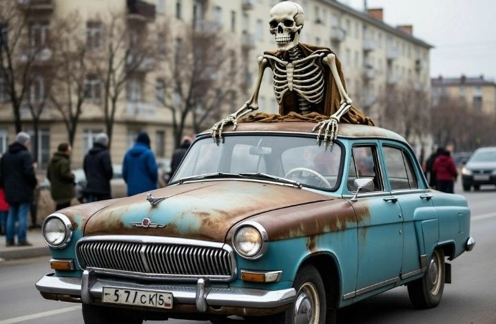 Его на крыше Волги старой в морг везут,