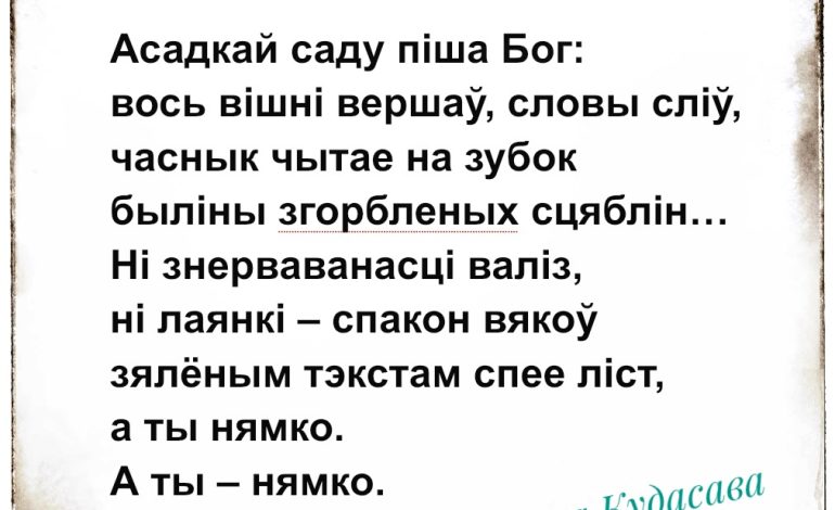 24.06.2025 - 20:27Гэты верш першапачаткова быў напісаны на русскай мове (наколькі я памятаю, напісала я яго падчас пандэміі, назвала «Немая», і ён да гэтай пары боўтаецца у інтэрнэце), а нядаўна выпадкова ўбачыла верш Насты Кудасавай, ўспомніла пра свой твор і вырашыла, што было б цікава зрабіць пераклад з рускай мовы на беларускую. Вось такая гісторыя.